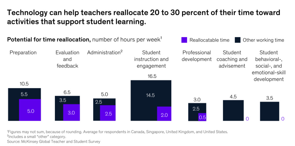 Las diversas herramientas tecnológicas, entre ellas la IA, puede ayudar a los formadores a reasignar entre un 20 y un 30% de su tiempo a actividades que favorezcan el aprendizaje de los alumnos.